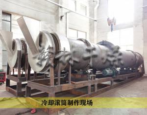 物料通過高度煅燒后進入回轉滾筒內部。冷卻水通過循環水泵進入滾筒外夾套,熱的物料在滾筒筒體內壁不斷地交換接觸面,從而實現冷卻