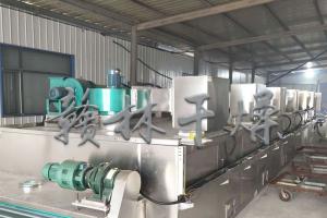 物料由加料器均勻地鋪在網(wǎng)帶上,網(wǎng)帶采用12-60目不銹鋼絲網(wǎng),由傳動(dòng)裝置帶動(dòng)物料和網(wǎng)帶一起在干燥機(jī)向前移動(dòng)。